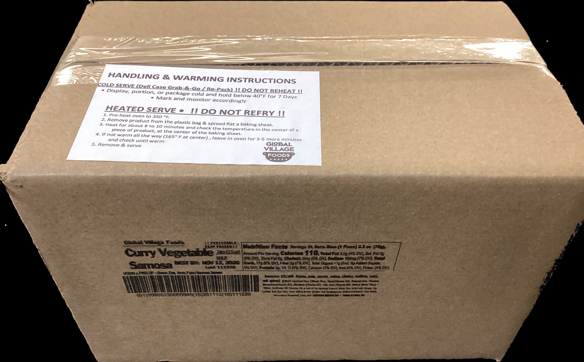 Kenyan recipe with potatoes, peas, carrots, cabbage, scallions, cilantro, herbs & spices, all stuffed & fried in a delicate, flaky dough pocket.