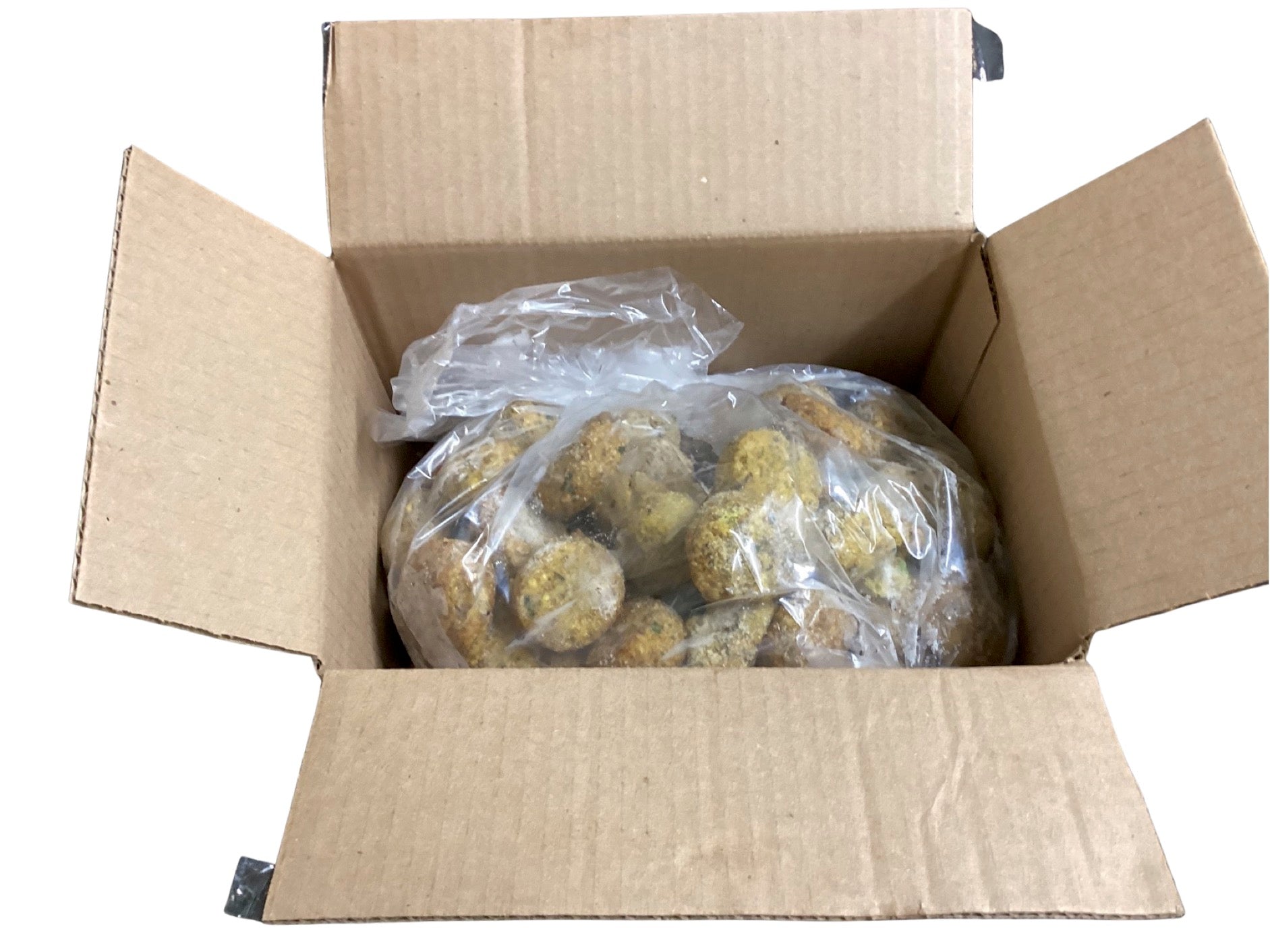 Chickpea fritter, crunchy outside- moist inside, bursting with rich aromatic herbs & spices.