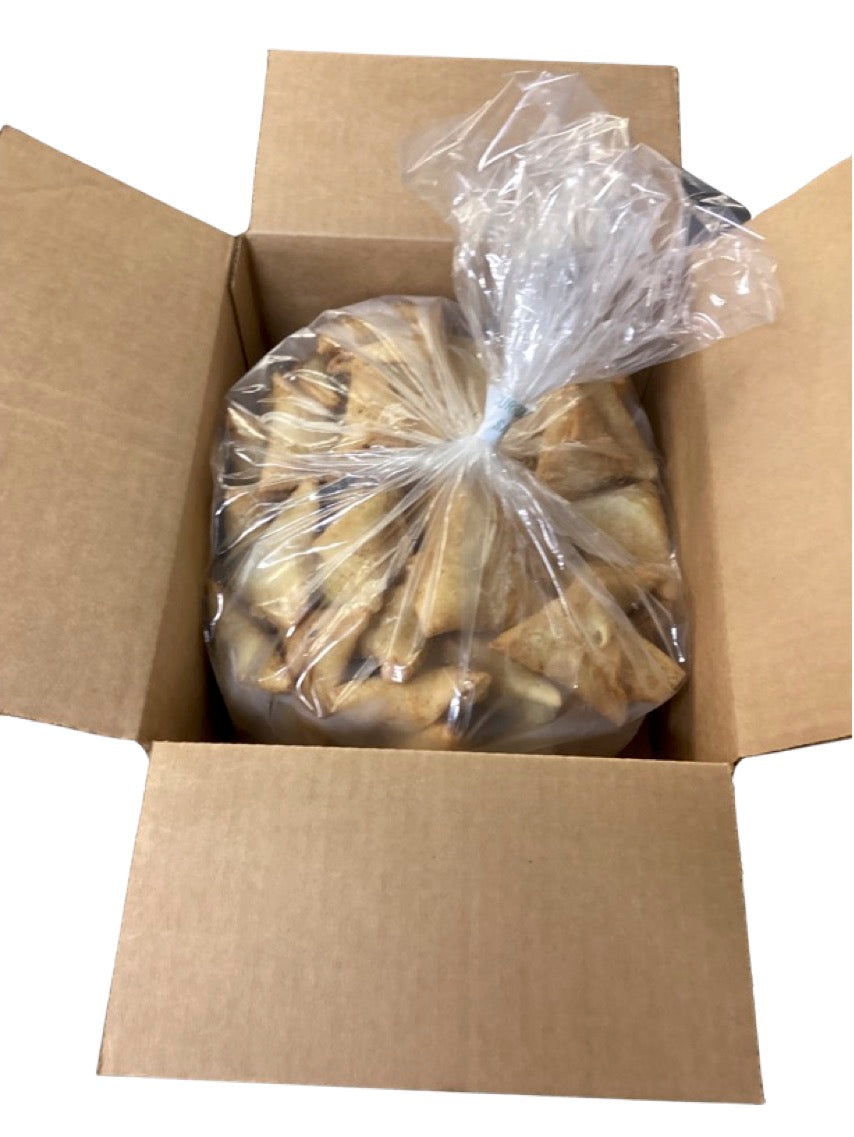 Kenyan recipe with potatoes, peas, carrots, cabbage, scallions, cilantro, herbs & spices, all stuffed & fried in a delicate, flaky dough pocket.