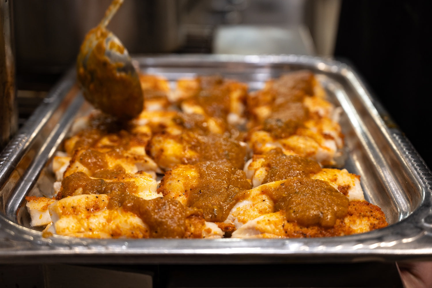A savory, punchy tomato-Eggplant Sauce made with garlic, ginger & pepper spices, for a complex flavor profile. A sophisticated taste topper to any seasoned entree base.